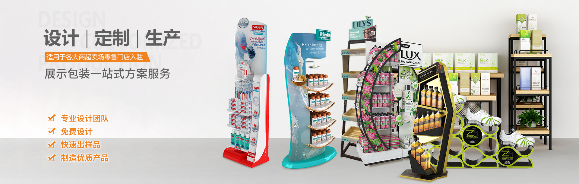 自有办公区及厂房面积 8000 平方米。至今已为多品牌客户开发 设计几百款终端道具产品。